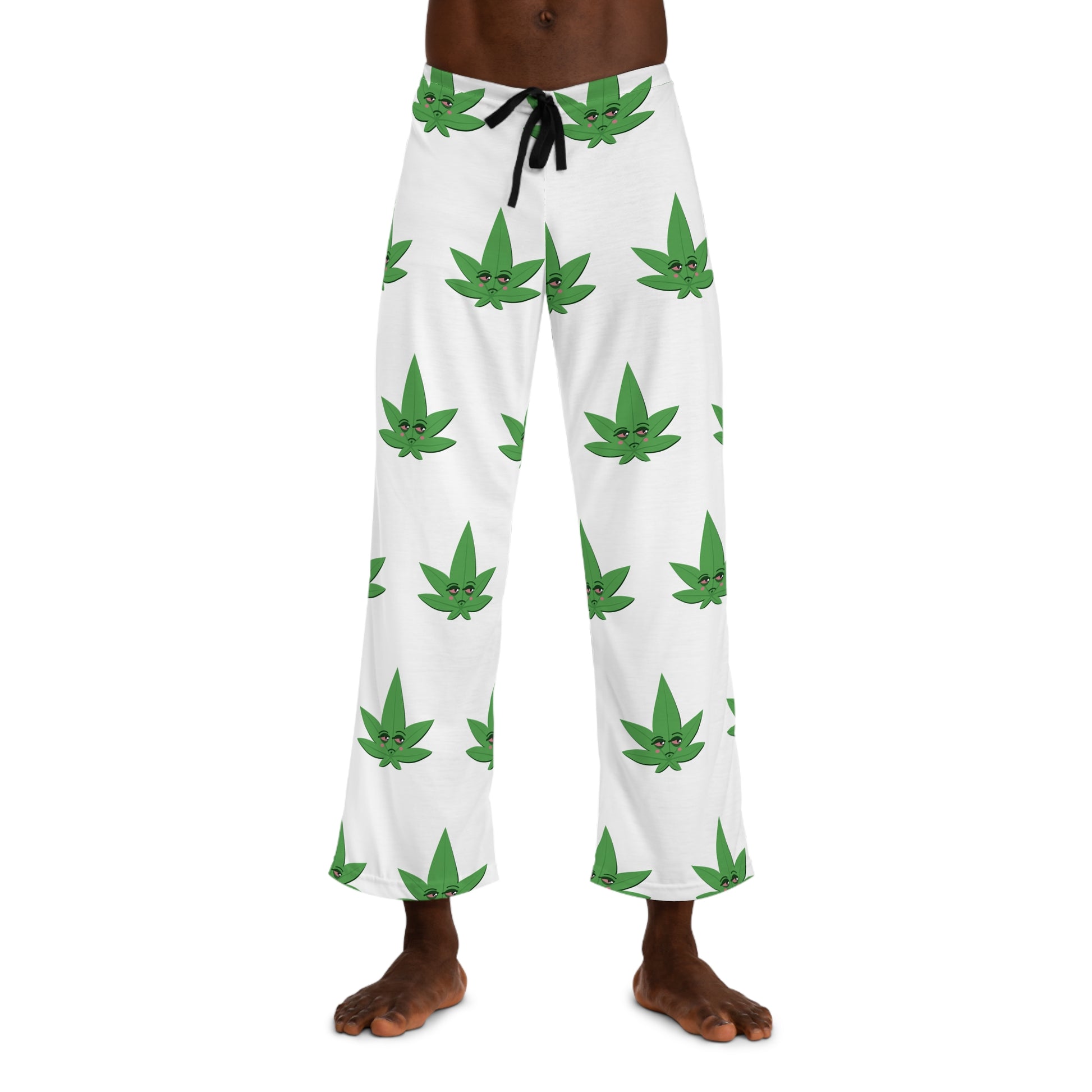 Slide into something playful and easygoing — lightweight pajama pants printed edge-to-edge with a cheeky green leaf motif. The breathable, smooth polyester jersey keeps the print bright and crisp while the relaxed cut and elastic-backed waistband with a black drawstring let you lounge, stretch, and sleep without fuss. These pants bring a laid-back, slightly mischievous mood to slow Sunday mornings, late-night chats, or cozy evenings in. They pair with a simple tee or an oversized hoodie for a comfortable at-home look that feels personal and fun.
