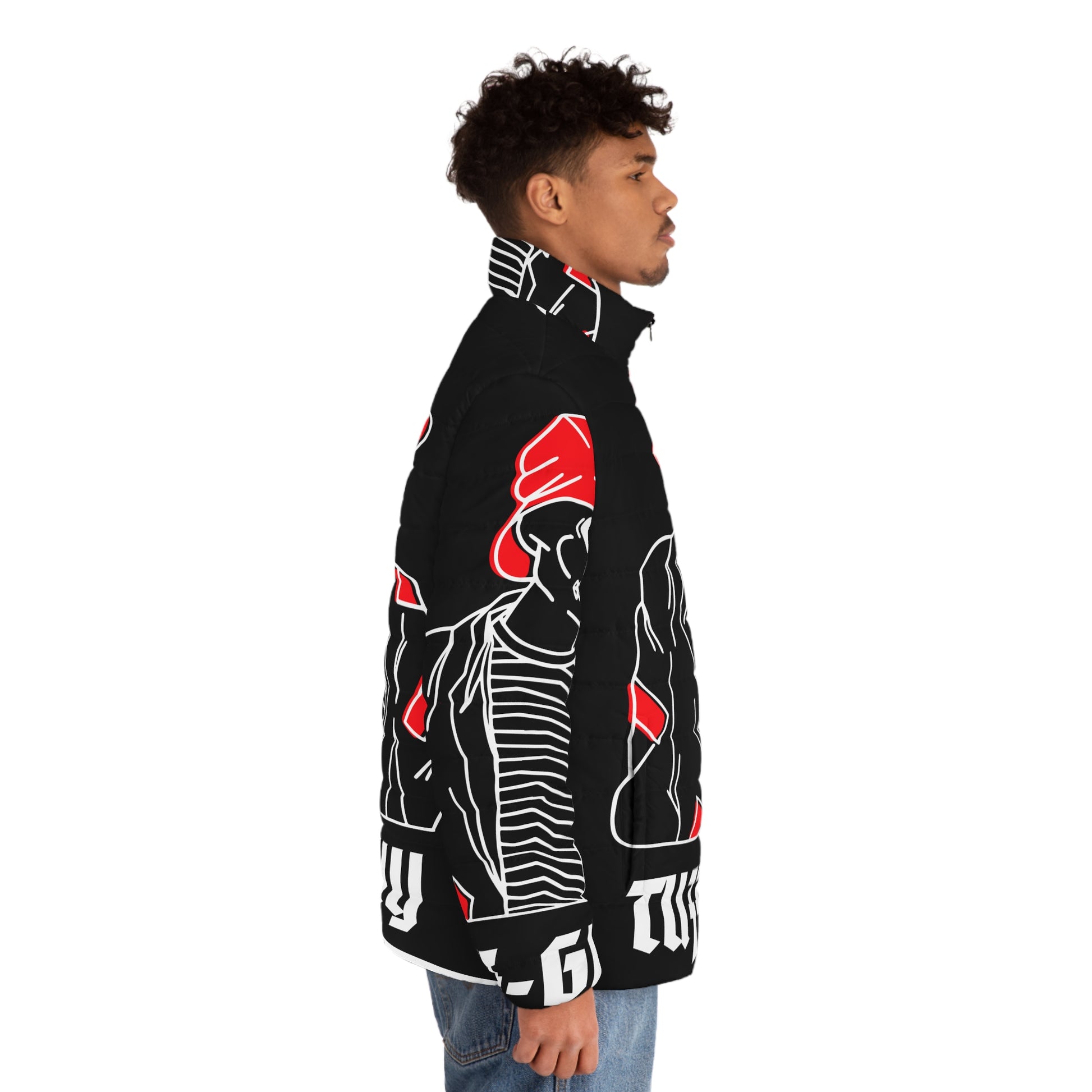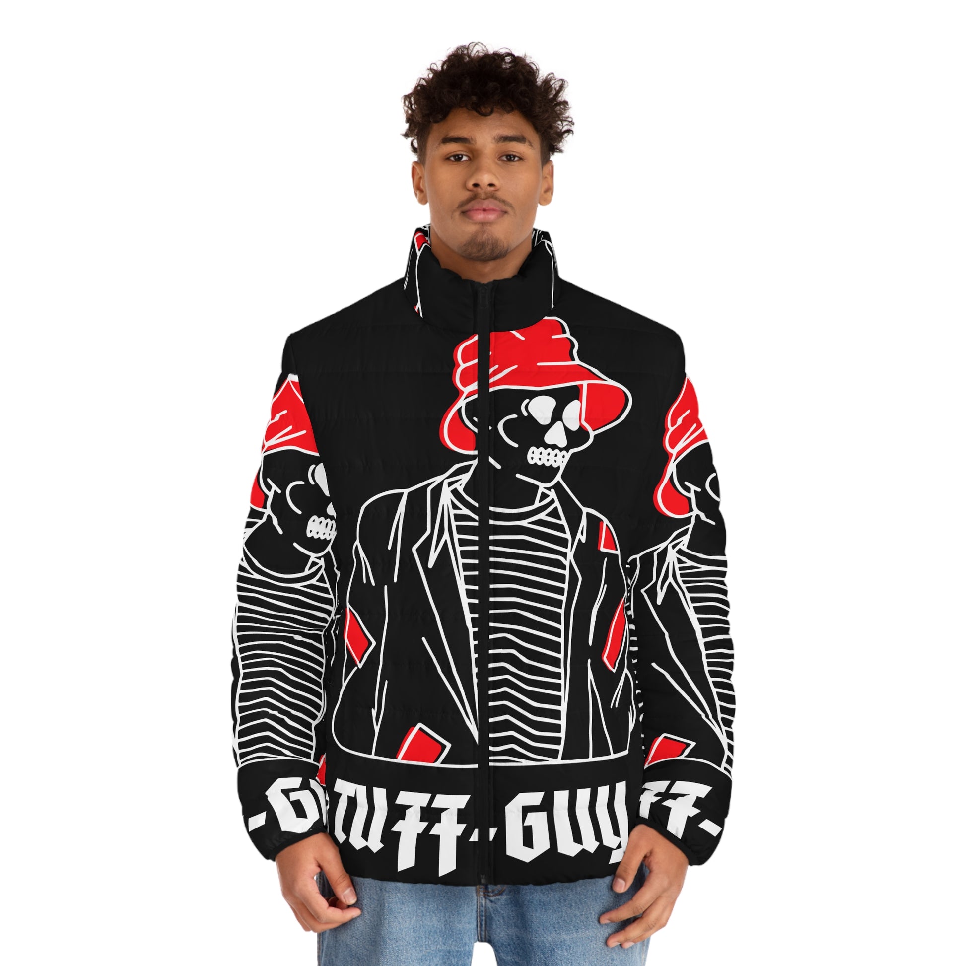 Tuff-Guy "Bucket Hat" - Men's Puffer Jacket (AOP) Black & Red